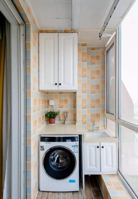 功能性的生活陽臺預留一個開關用來做照明,設置一個五孔插座供洗衣機使用。